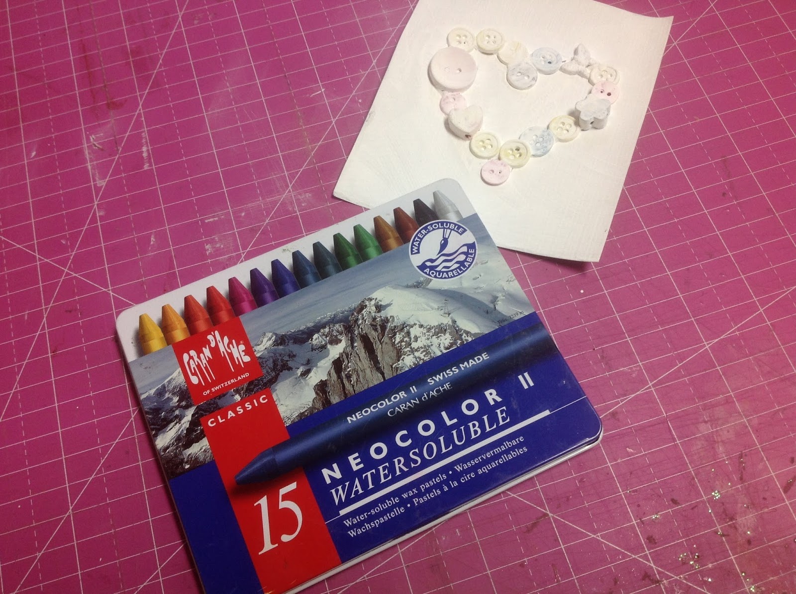 En este paso puedes utilizar una variedad de medios: pintura acrílica, acuarelas, … en mi caso he utilizado estos Watercolor Crayons que me ha regalado mi amiga Isabel.