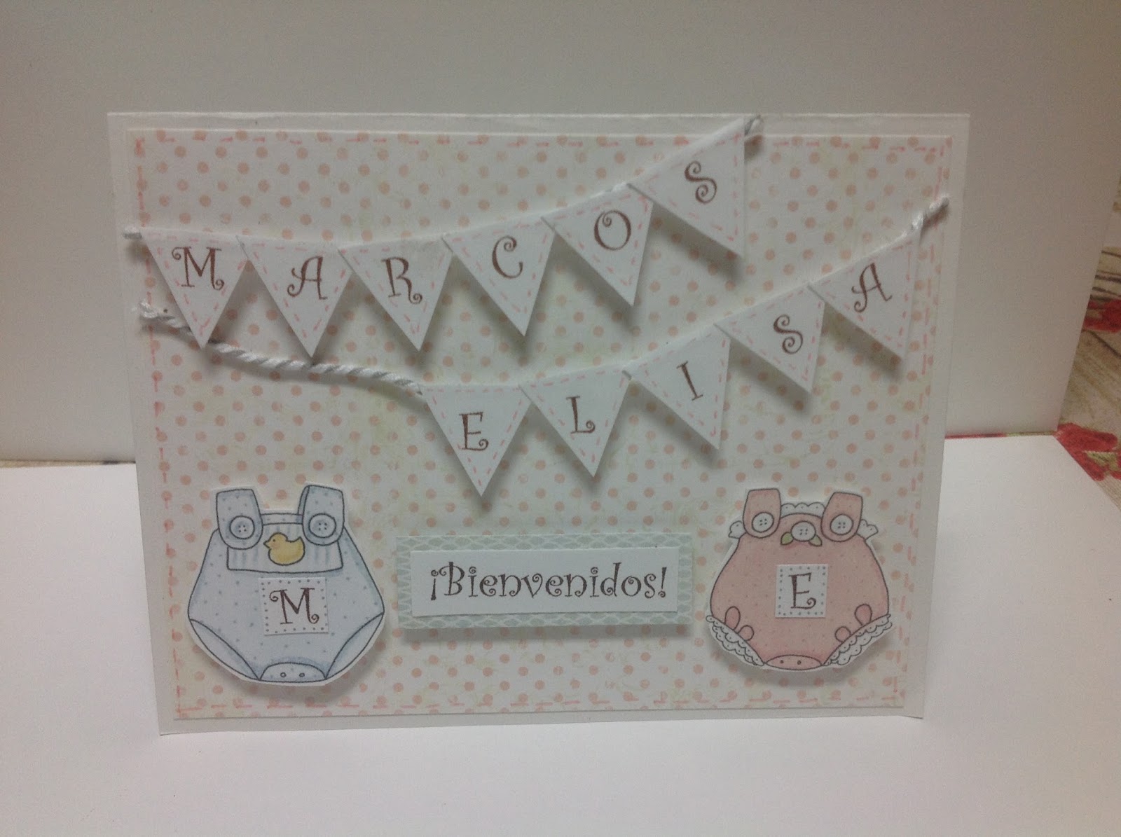 Utilizando las cintas con relieve añade un detalle precioso a esta tarjeta. ¡Cómo me encanta! Y aún más cuando le vi a los nenes. Son preciosos y me uno al mensaje de esta tarjeta. Bienvenidos a este mundo.