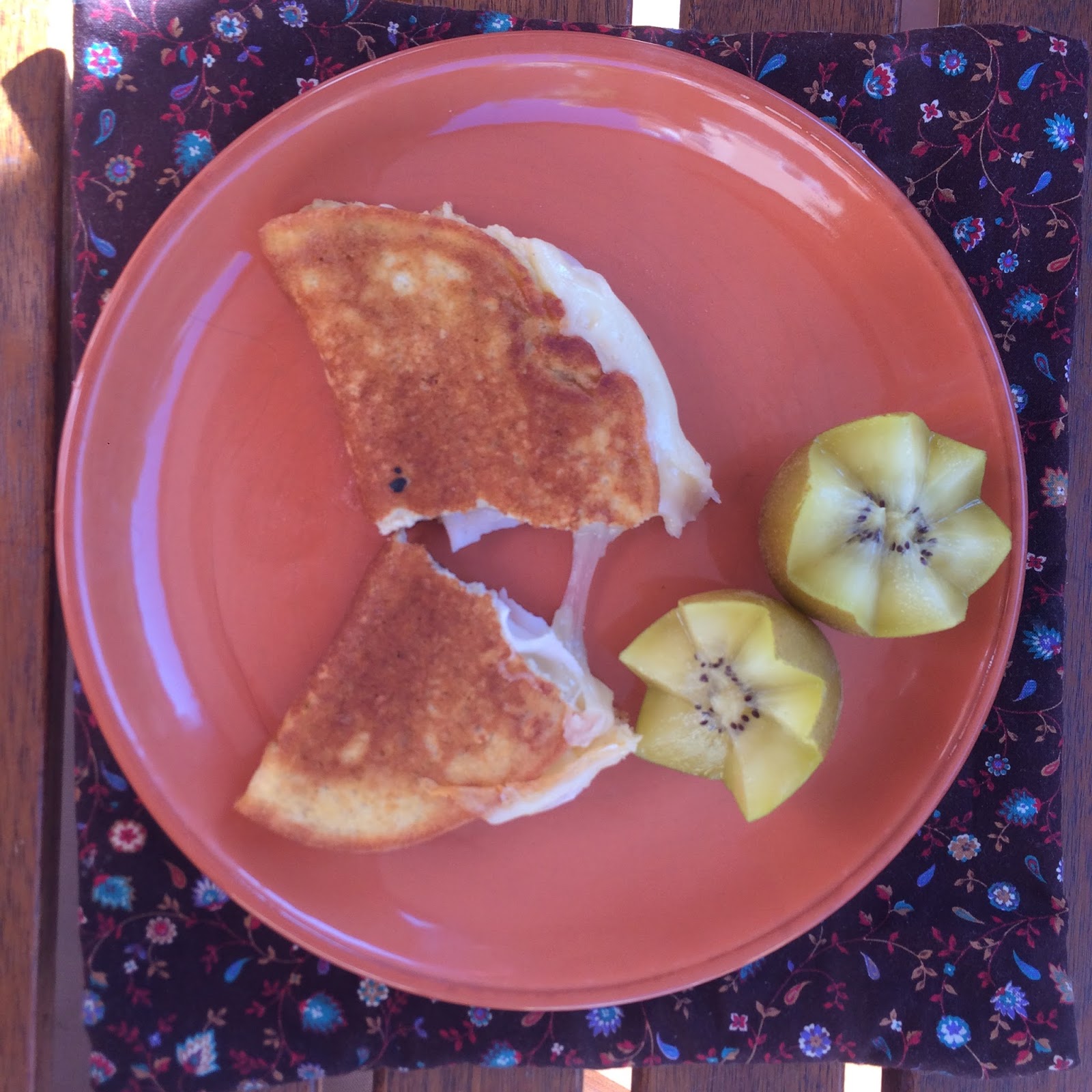 Mezclarlo bien. Cocinar en un sartén con un poco de aceite de coco o de oliva. Seguir procedimiento de una tortita. Cuando los lados cambien de color es tiempo de dar la vuelta. Una vez dando la vuelta, poner relleno en la mitad y doblar.