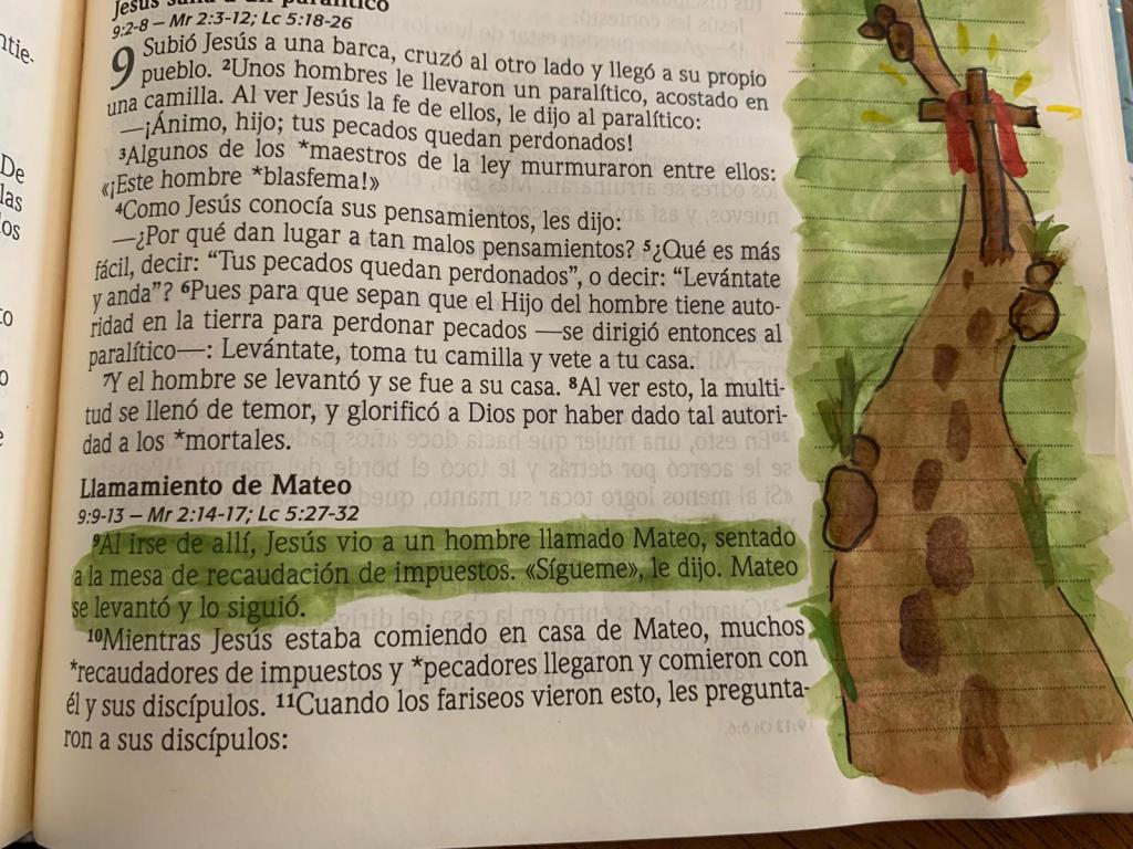 Mateo era un recaudador de impuestos. Tenían la fama de recibir sobornos y dinero ilícito. Así que era un hombre de mala fama y poco respecto. Me encanta que no cuestiona a Jesús ni piensa dos veces, Le sigue a Jesús sin titubear.