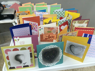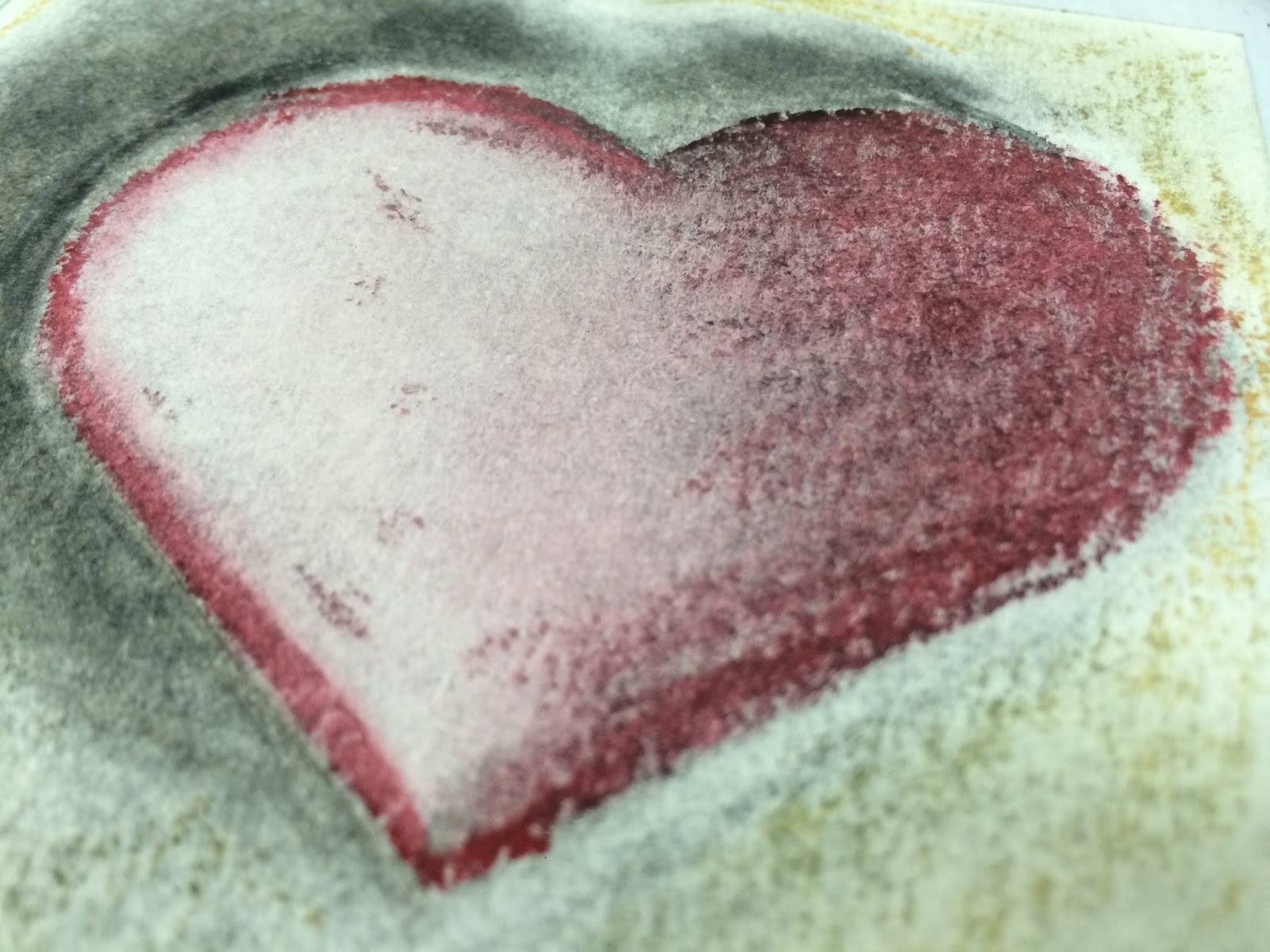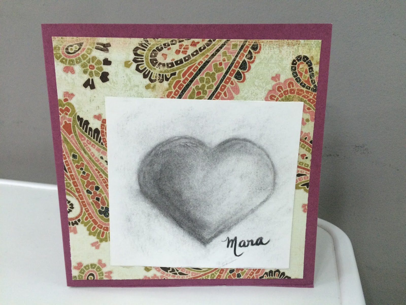 Esta es la que hice yo: como todas mis amigas, he incorporado papeles y color contrastando con el dibujo del corazón en lapis negro.