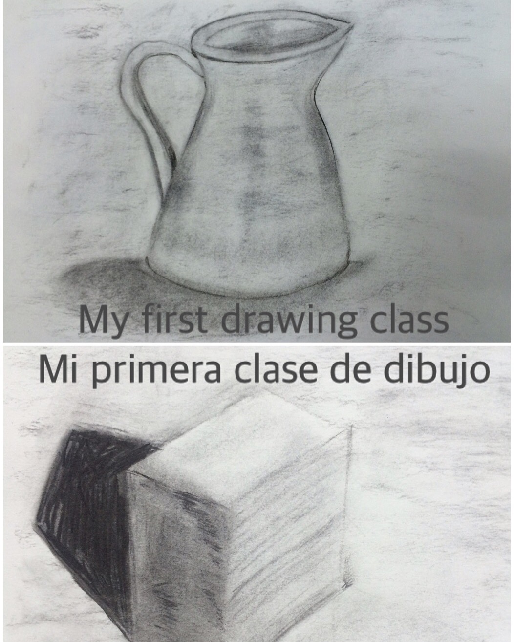 Hace un par de semanas tuve mi primera clase de dibujo. Me ha parecido muy interesante como con un poco de técnica cualquiera pueda dibujar. Fue una clase muy dinámica con el artista Greg Williams. ¡Os dejo en primer lugar con cuatro fotos de mis «obras de arte» de este día!