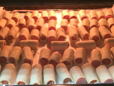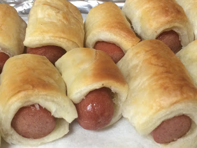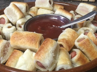 Los «Pigs in the blanket» es muy popular en los Estados Unidos como picoteo en fiestas. La traducción es: Cerditos en una mantita. Ser trata de salchichas cóctel o normales cortadas en 3 trozos iguales, cubiertas de una manta de hojaldre. Sencillo, ¿no?
