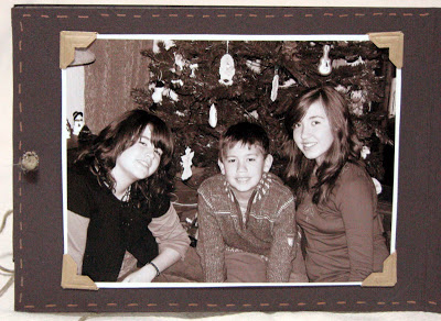 Esta foto es en la parte de tras. Este proyecto ha servido como un porta retrato en la mesa de escritorio de mi marido. Atención al pespunte con un boli color bronce que le da un look envejecido o de cuero cosido